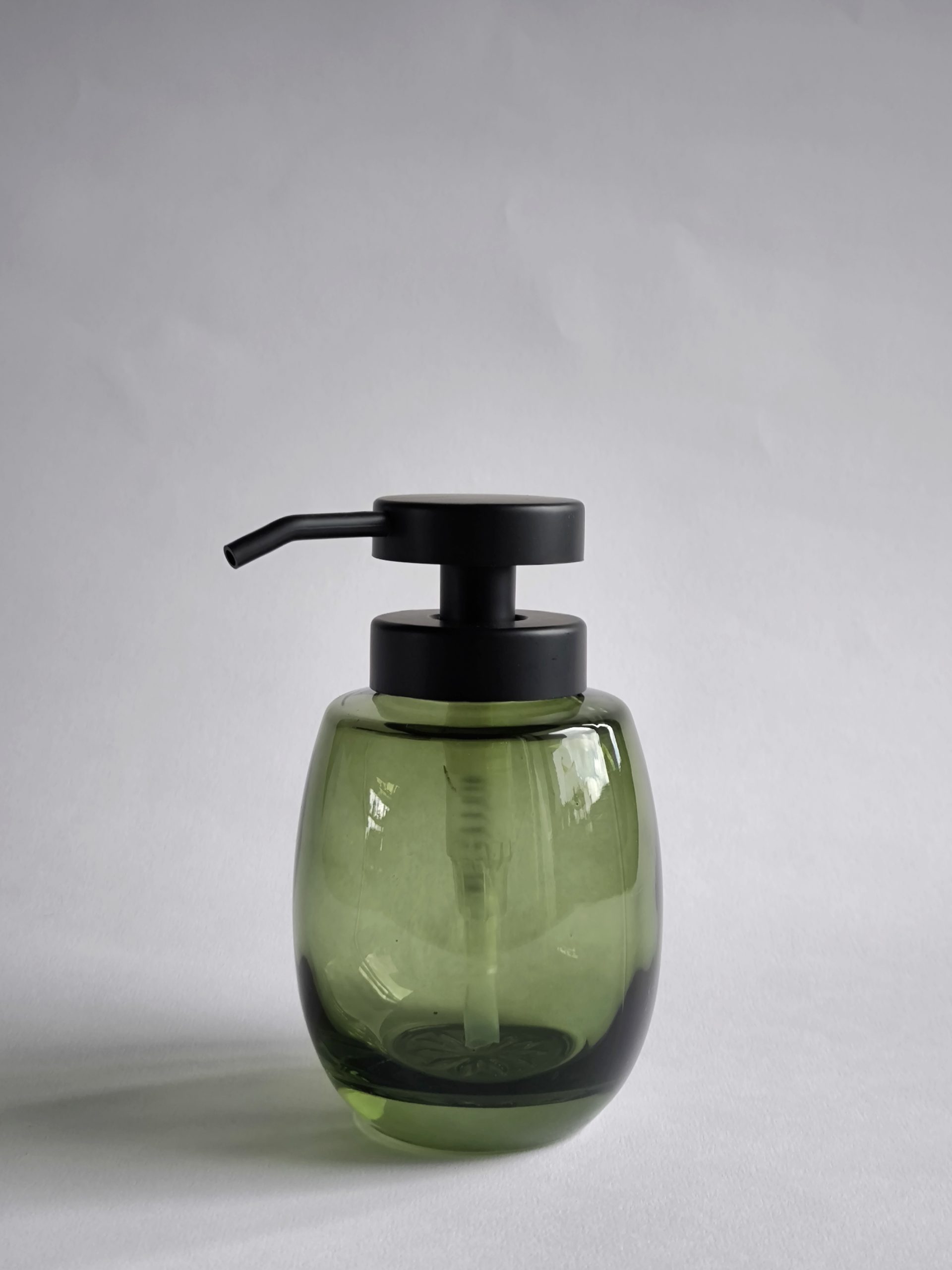 Porta sabonete líquido de vidro na cor verde musgo, perfeito para decorar seu banheiro/lavabo!